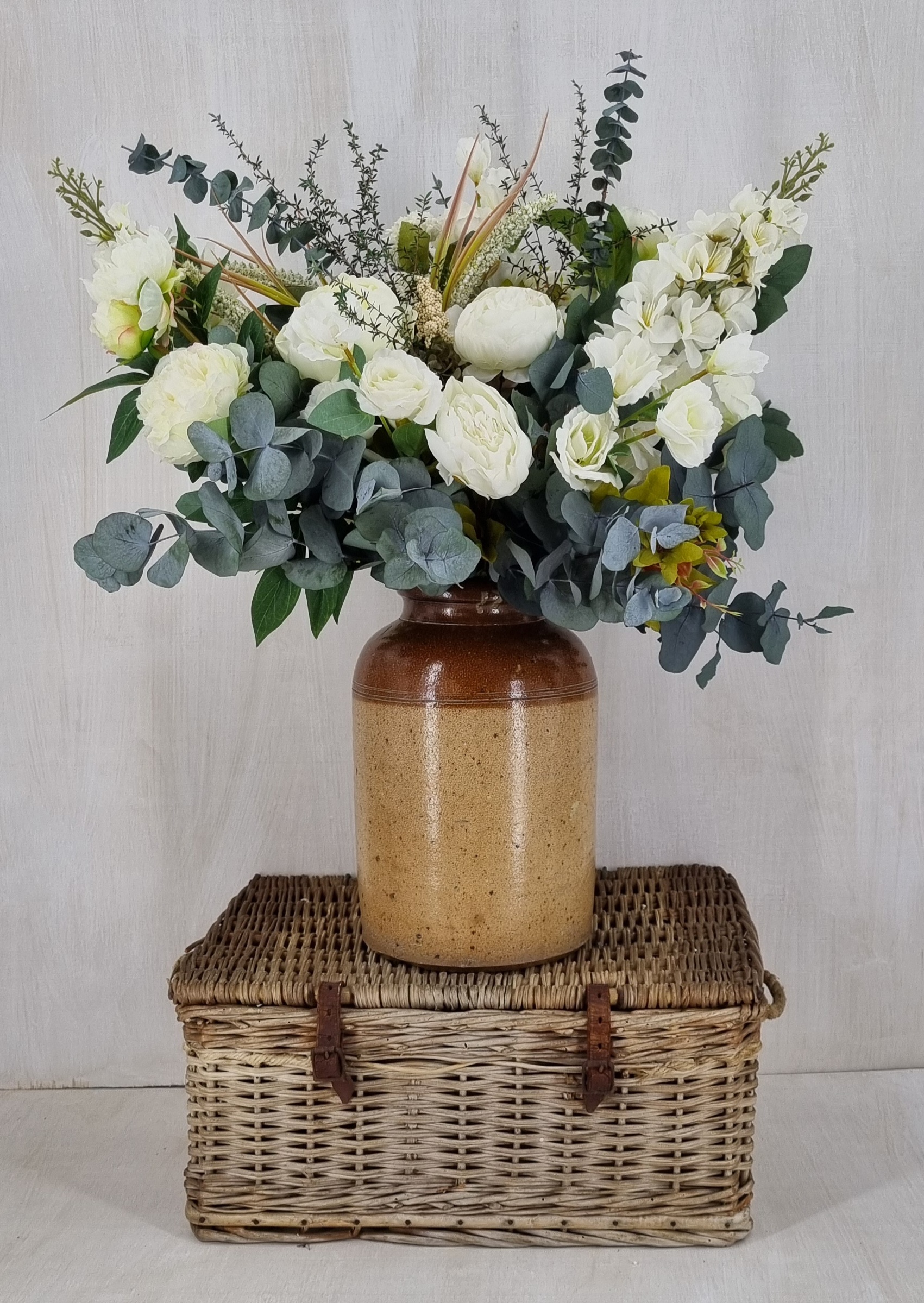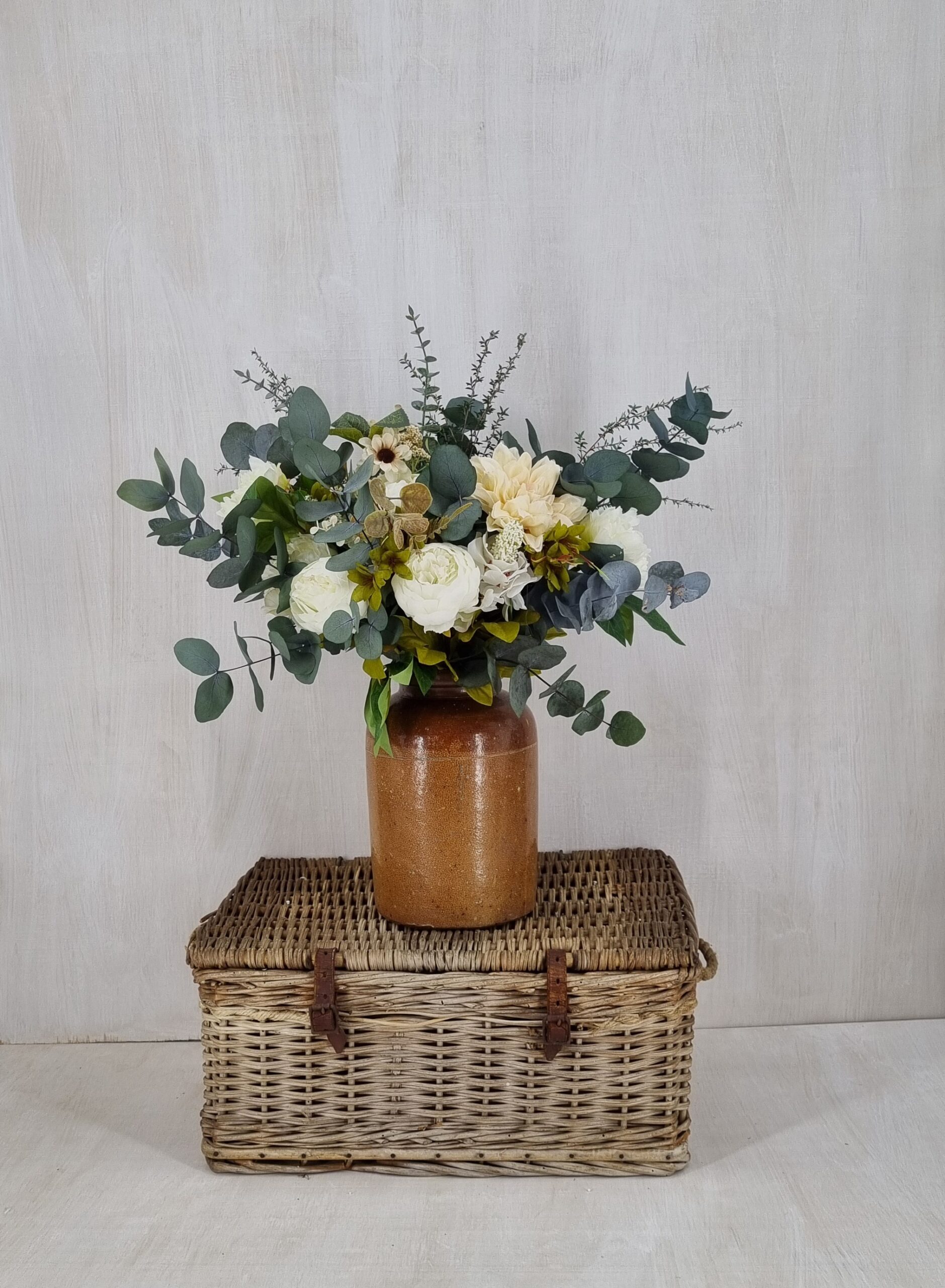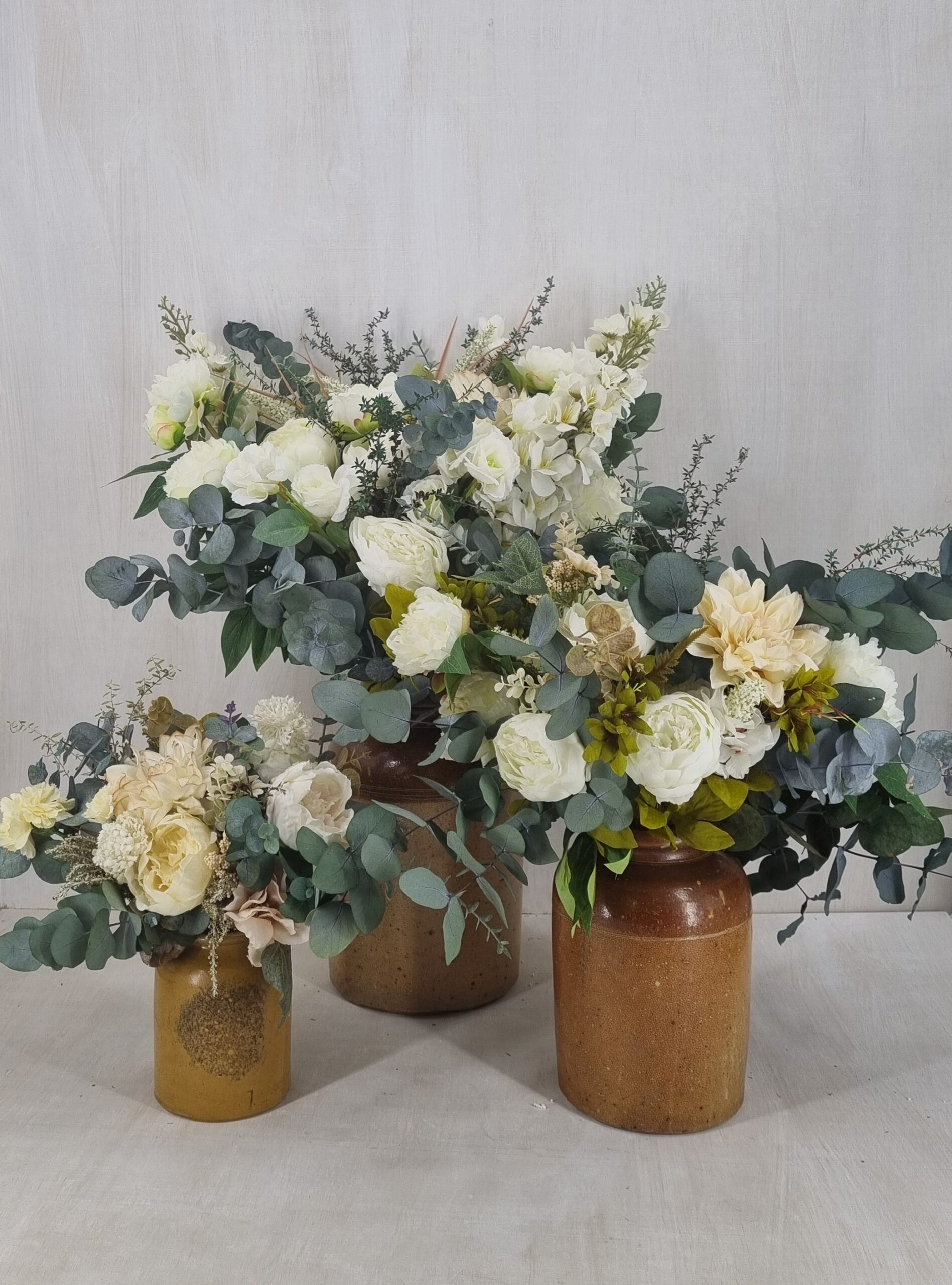 An elegant bouquet in layered ivory, cream, and soft green tones — understated, luminous, and effortlessly refined.