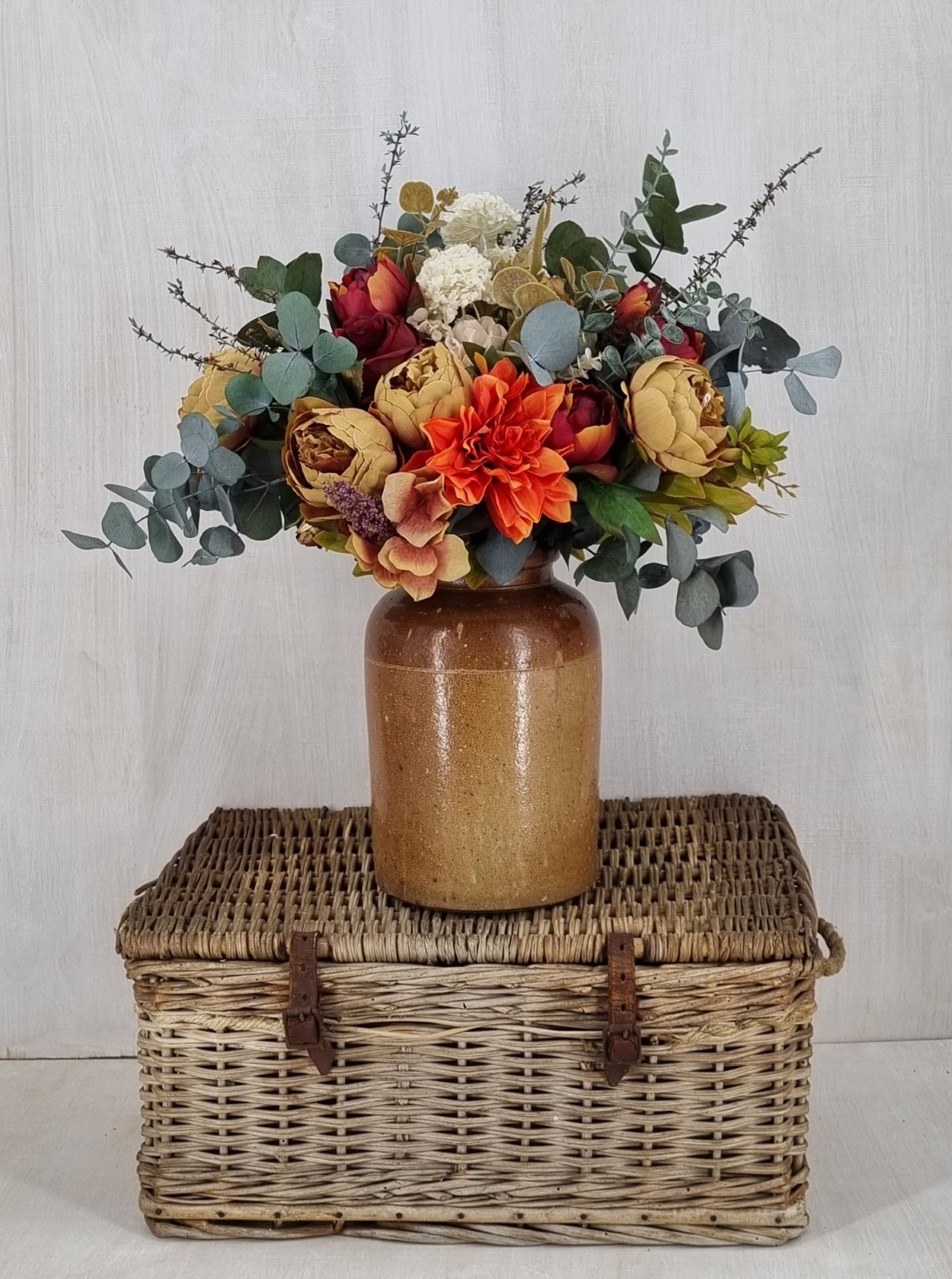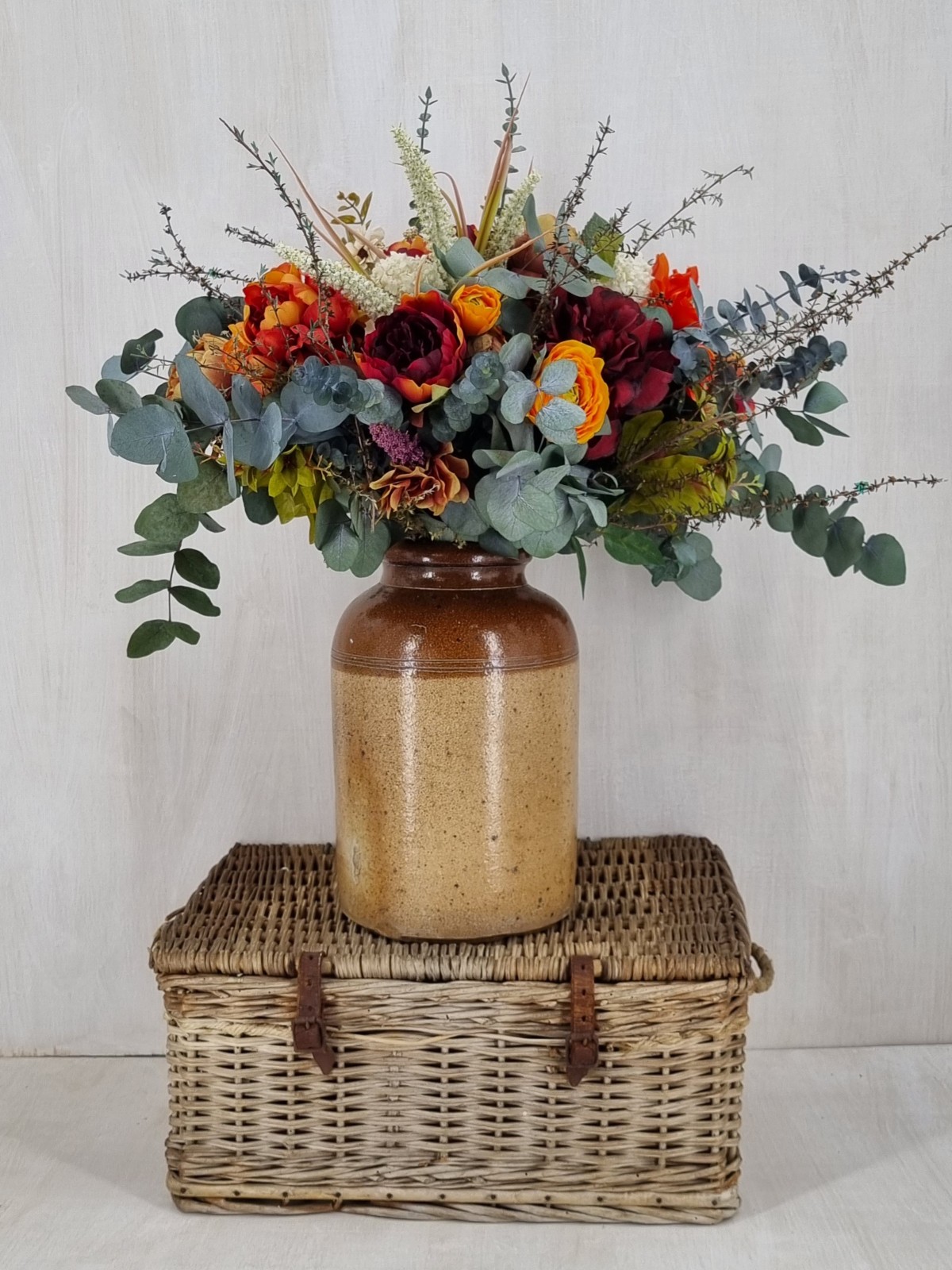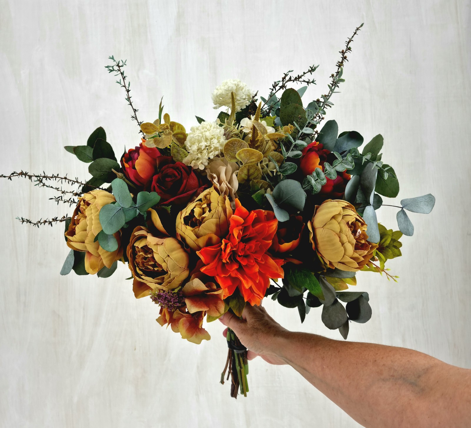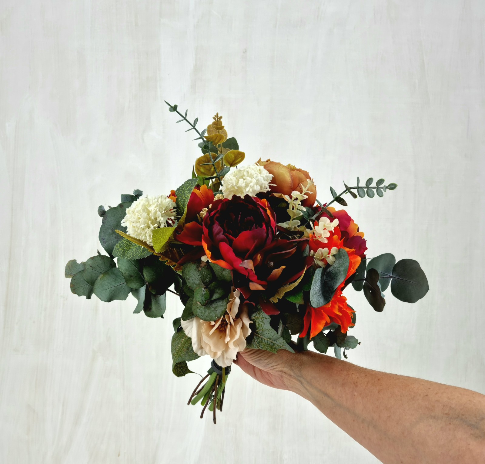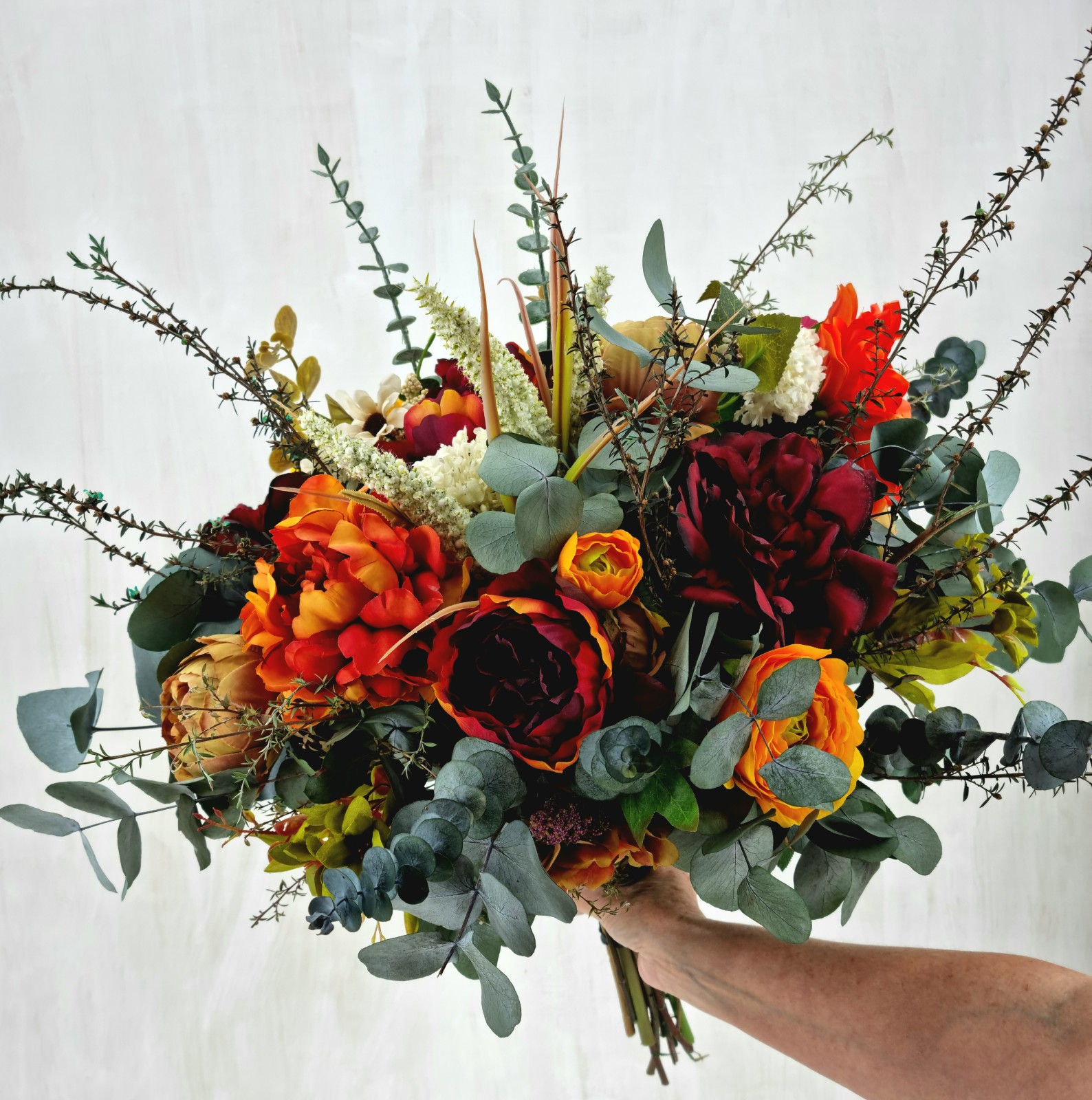 An everlasting bouquet created with preserved foliage and premium silk florals in rich red and warm spice tones. Expressive, vibrant, and full of warmth.